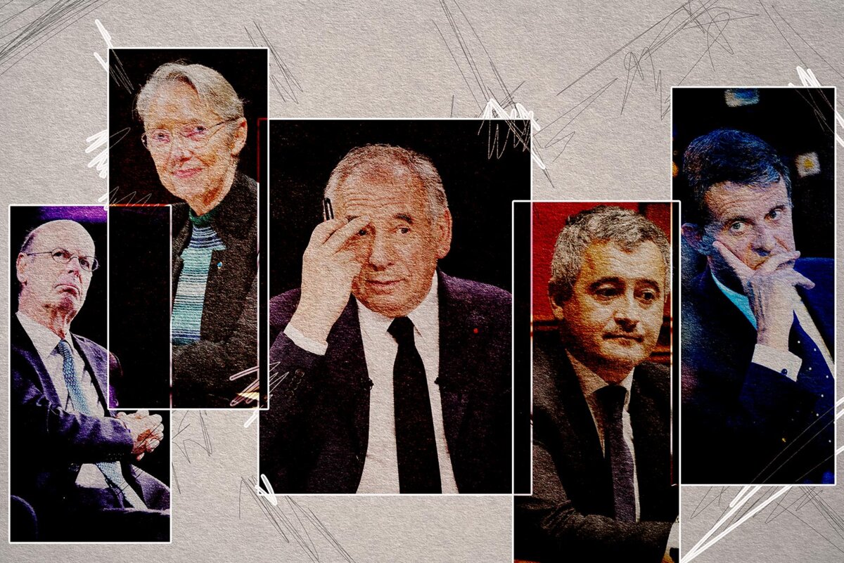 Membres du gouvernement Bayrou : de gauche à droite, Éric Lombard, Élisabeth Borne, François Bayrou, Gérald Darmanin et Manuel Valls. © Photomontage Mediapart avec AFP